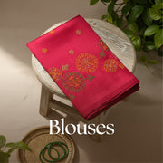 A lightweight georgette saree with overall Kasuti embroidery and tasseled pallu. Comes with a contrast embroidered blouse. Perfect for weddings, parties, and festive wear.