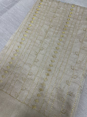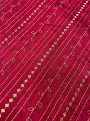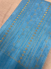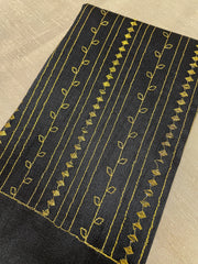 This stitched blouse showcases traditional Badkoli (duck) Kasuti embroidery in gold zari, with detailing on the back and shoulders. Designed with tasseled tie-ups, cotton lining, and extra fabric for alterations, it’s comfortable, versatile, and easy to wash—perfect for festive or regular wear.