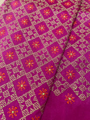 Featuring delicately embroidered star and diamond motifs in Kasuti stripe borders with zari work, this unstitched blouse in blended silk exudes timeless charm—perfect to pair with silk sarees and traditional jewellery.