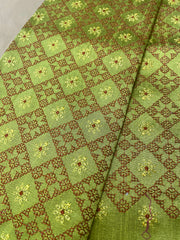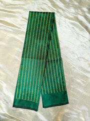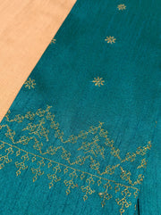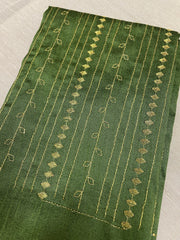 A rich blend of tradition and elegance, this unstitched blouse piece features delicate machine Kasuti embroidery along a temple-style border. Crafted in blended cotton silk, it offers a soft sheen and graceful drape. Perfect to pair with silk sarees—either matching or contrasting—for a refined, timeless look.
