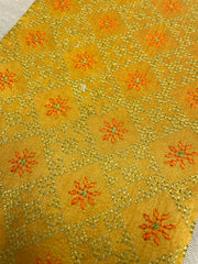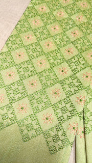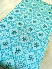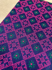 Featuring delicately embroidered star motifs over a bed of Kasuti jaal, this unstitched blended silk blouse showcases intricate all-over work—a true masterpiece for pairing with silk sarees and traditional jewellery.