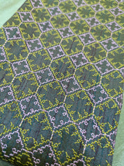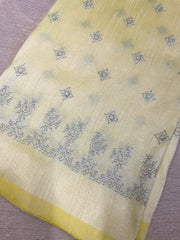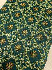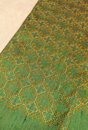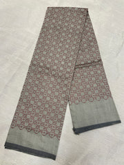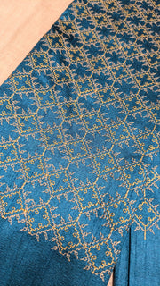 Featuring delicately embroidered Kasuti geometric flowers in a grid garden pattern, this unstitched blouse in blended semi-raw silk brings timeless elegance—perfect for pairing with silk sarees and traditional jewellery.