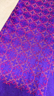 Featuring delicate overall Kasuti embroidery in a jaali (net) design, this unstitched blouse in blended silk offers timeless elegance—perfect to pair with silk sarees and traditional jewellery.