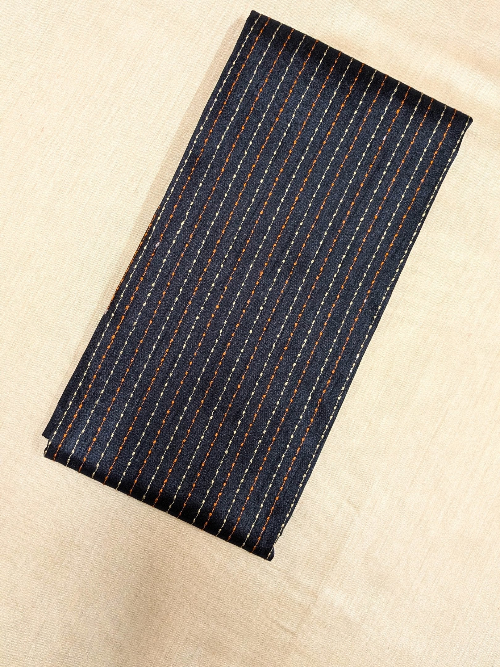 Featuring delicately embroidered borders in thread Kasuti work, this unstitched blouse in blended cotton silk is a graceful choice—ideal to style with silk sarees and traditional jewellery.