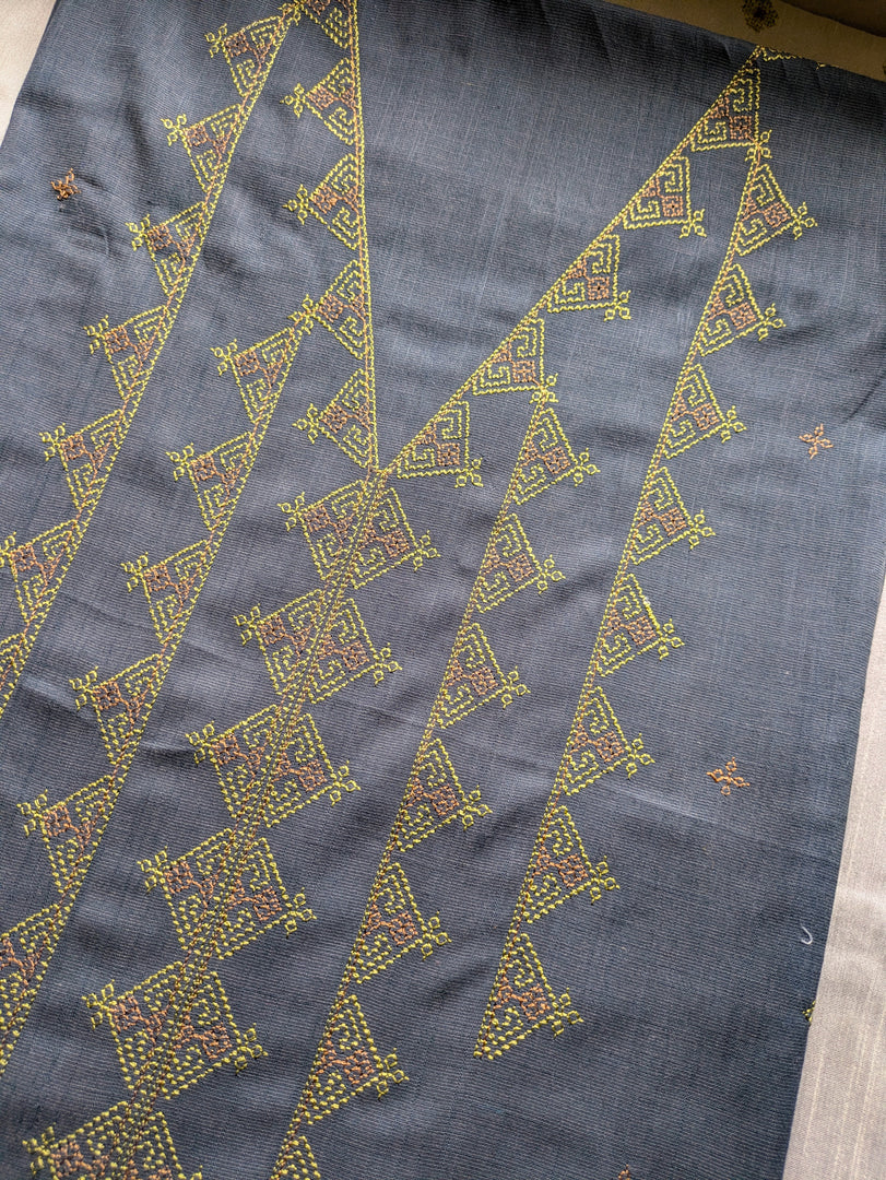 Ash kasuti kurti with subtle geometric embroidery motifs