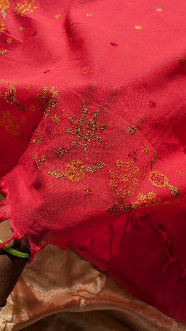 Celebrating Karnataka’s flora and fauna through this kasuti embroidered designer cotton saree in beautiful traditional motifs. The pallu is full of a colourful wildflowers in kasuti embroidery with ornate details for you to discover and enjoy. Light weight, easy to drape and maintain these affordable drapes will surely be your wardrobe staples.
