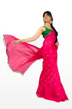 Load image into Gallery viewer, Pink flora butti saree with floral woven motifs front view