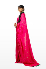 Load image into Gallery viewer, Pink flora butti saree blouse back hook embroidery detail