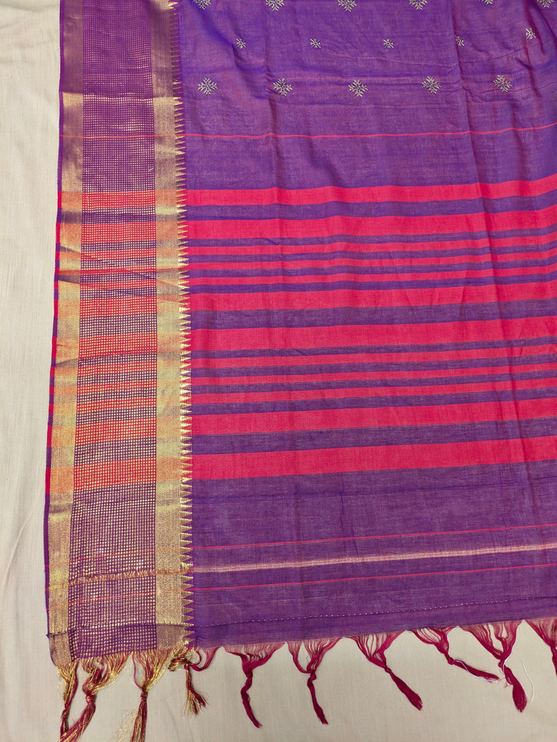 “Celebrate the rich heritage of Karnataka with our Kasuti Handwoven Saree, featuring an exquisite collection of all the iconic bird motifs from traditional Kasuti embroidery in one stunning piece. Each motif, inspired by the diverse and vibrant birdlife of Karnataka, from graceful peacocks to serene swans, is brought to life through intricate machine embroidery. This saree embodies the harmony and beauty of nature, making it a perfect choice for festive occasions, cultural celebrations, or weddings. The soft, handwoven fabric ensures an elegant drape, blending tradition with nature in every thread."