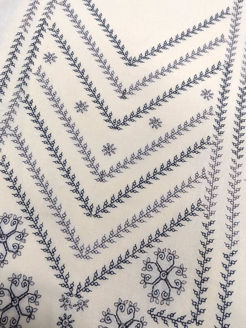 Soft, breezy, cotton Kasuti embroidered kurta material for everyday wear. This piece comes in delicate thread embroidery over handoom cotton fabric. Elegant and sweet, this set will definitely be a statement piece in your wardrobe.