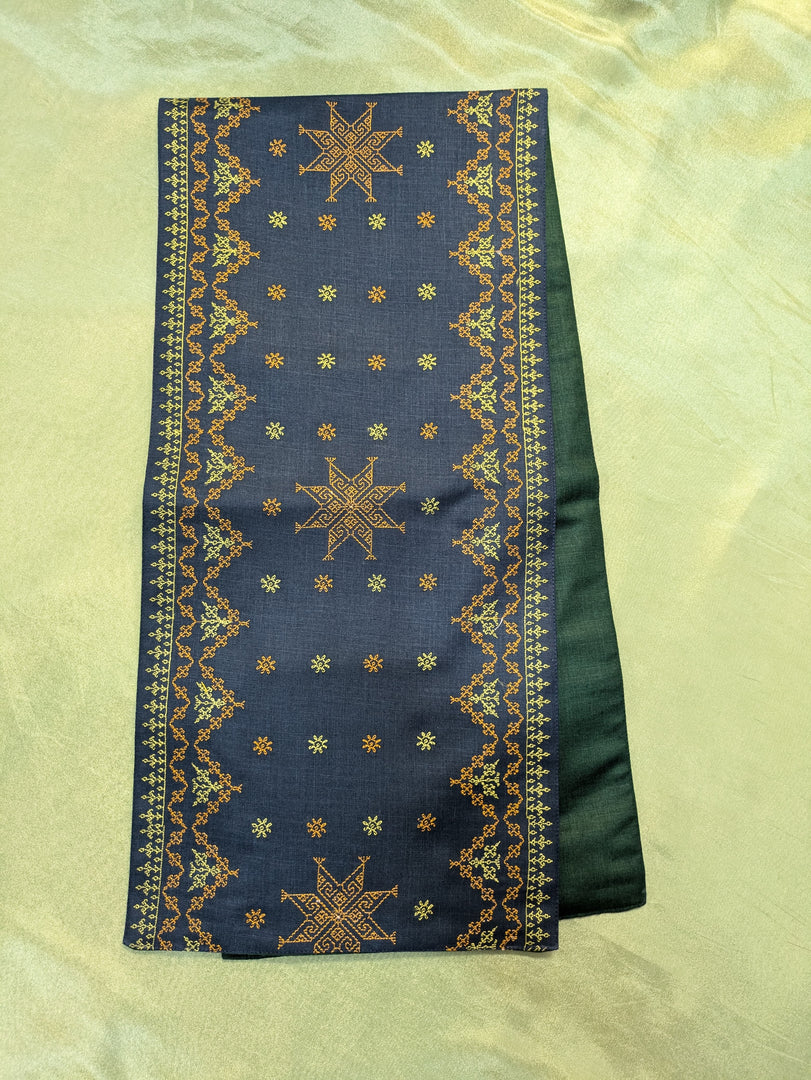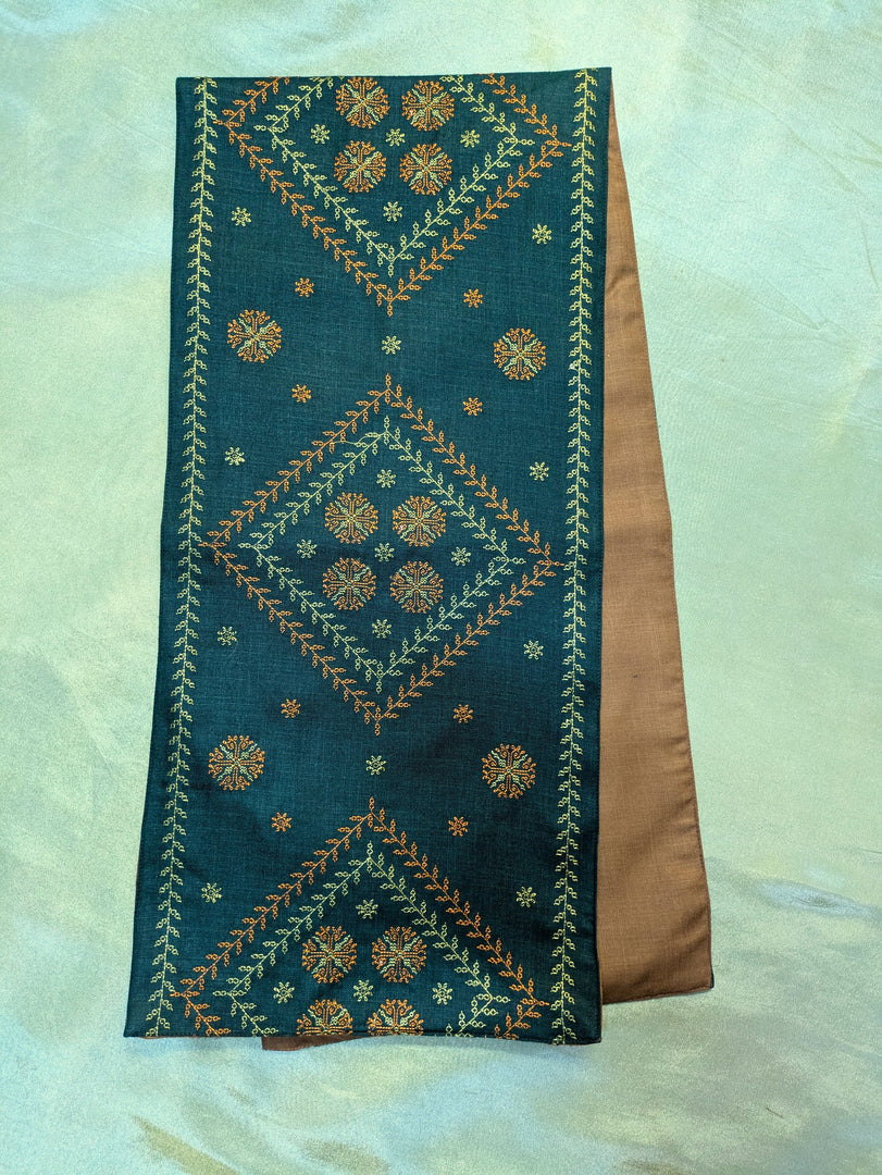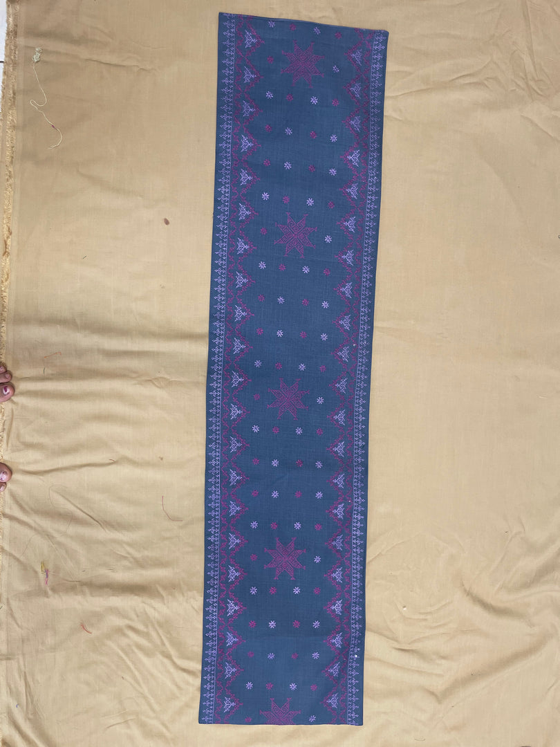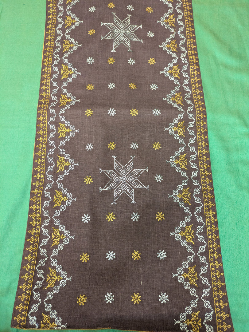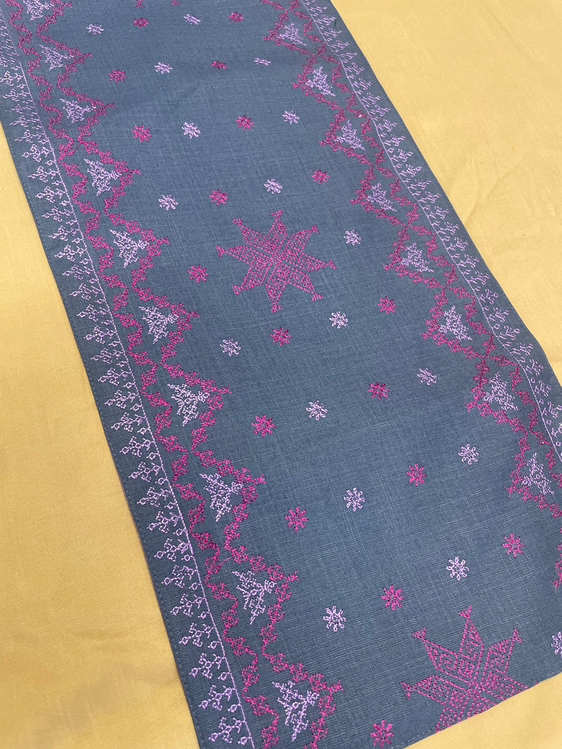 Add a touch of elegance to your home with these table runners in delicately embroidered kasuti temple borders with traditional star motifs. These pieces are sure to brighten up any space and add beautiful details to every meal conversation. Made in traditional folk embroidered kasuti motifs, these are also perfect gifts, souvenirs for festivities and guests. Reach out to our team for bulk orders and customisation for quantities.