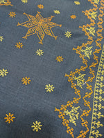 Load image into Gallery viewer, Grey table runner with embroidered border and textured fabric design