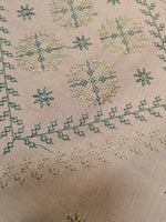 Load image into Gallery viewer, green wildflower table runner with embroidered floral border design