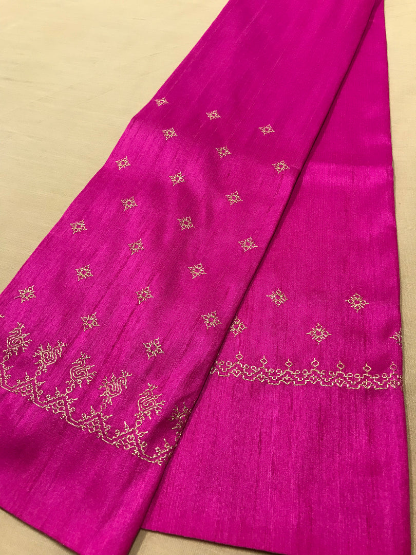 Detailing: Gold Zari Machine Embroidered unstitched Blouse piece.