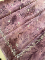 Load image into Gallery viewer, milkyway tie-dye periwinkle organza saree showing embroidery details